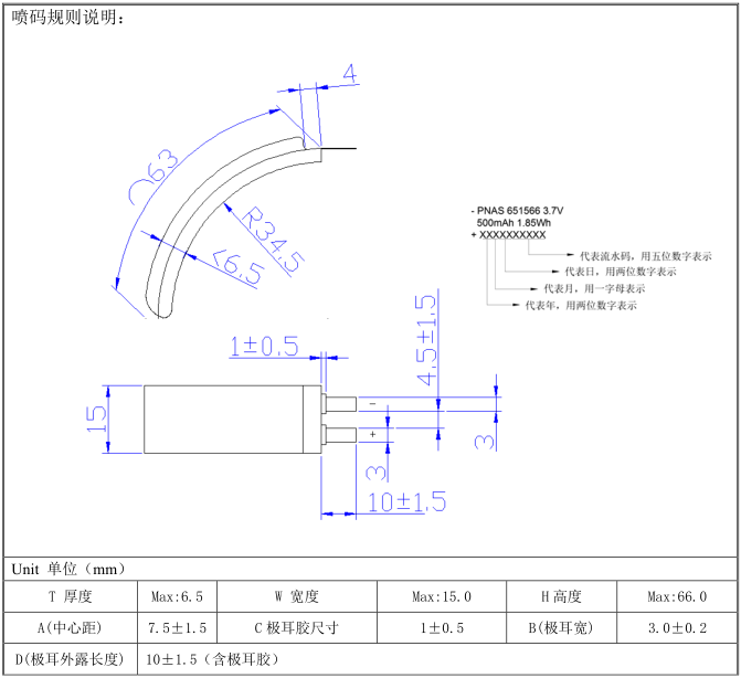 最小容量:500mAh